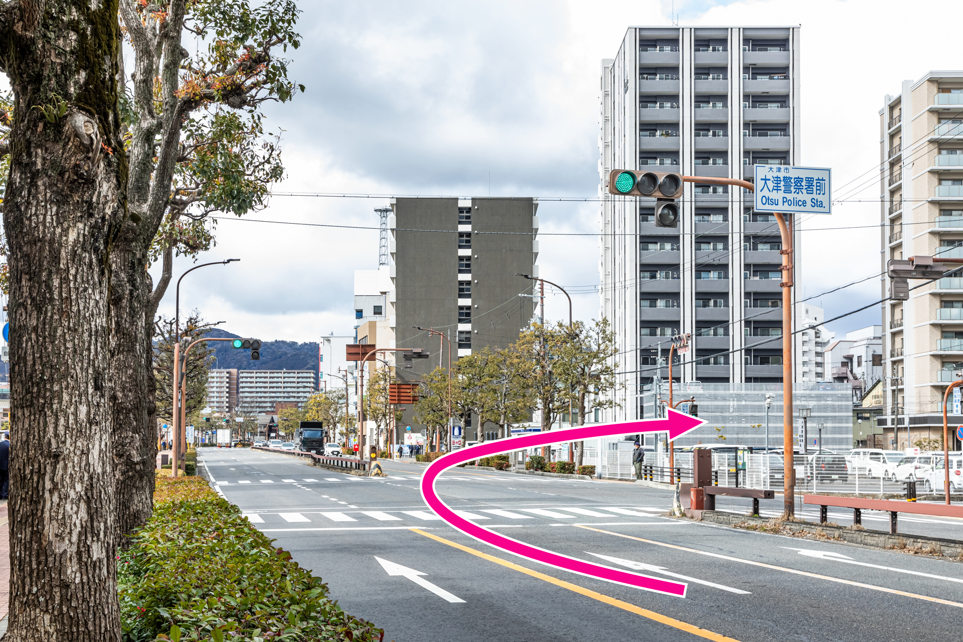 大津警察署前を右折